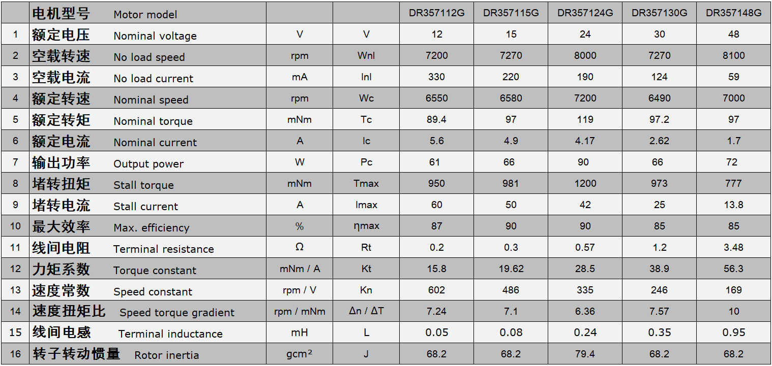 电机参数: