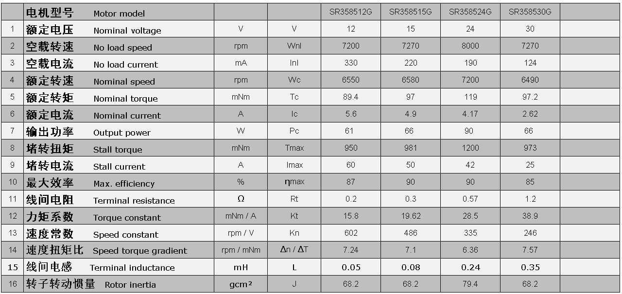 电机参数:
