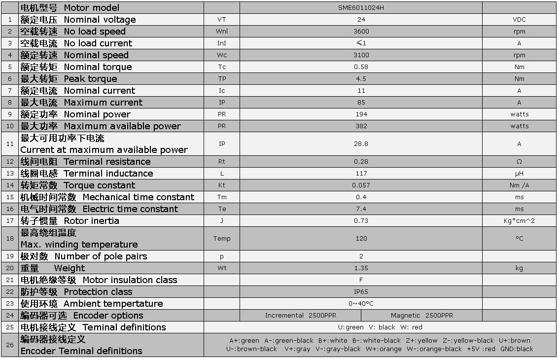 电机参数: