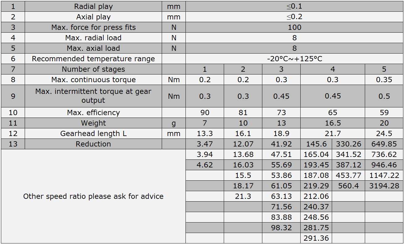 Gearbox Specification: