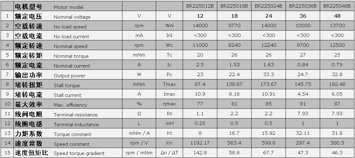 Motor Specification: