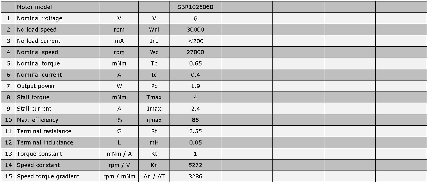 Motor Specification:
