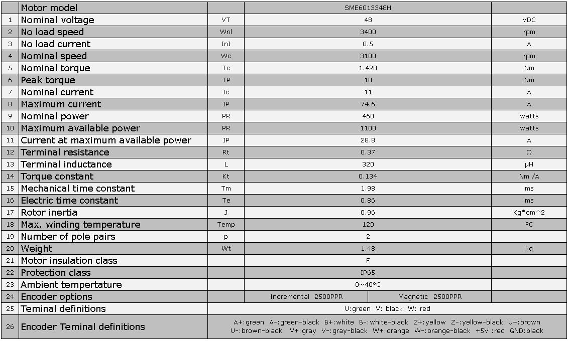 Motor Specification: